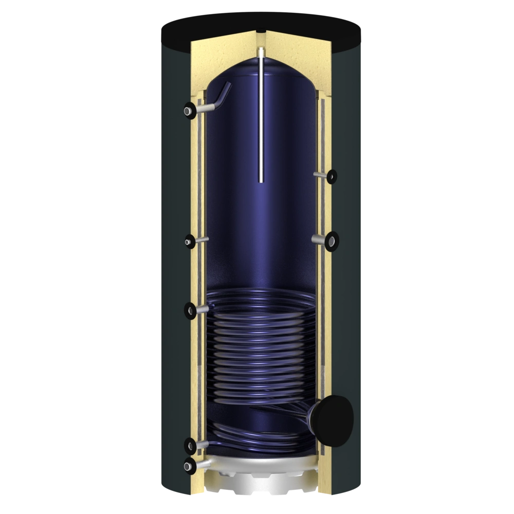 La superficie interna del bollitore ha una finitura smaltata di alta qualità. La superficie dello scambiatore di calore di dimensioni generose, che si estende fino al pavimento, garantisce un ottimo scambio di calore. Una flangia d'ispezione laterale consente una facile manutenzione e pulizia del bollitore e, se necessario, può essere equipaggiato con un manicotto per la resistenza. L'impareggiabile isolamento sottovuoto OEG dei cilindri ha perdite di calore significativamente inferiori rispetto al guscio di coibentazione dei cilindri standard presenti sul mercato.