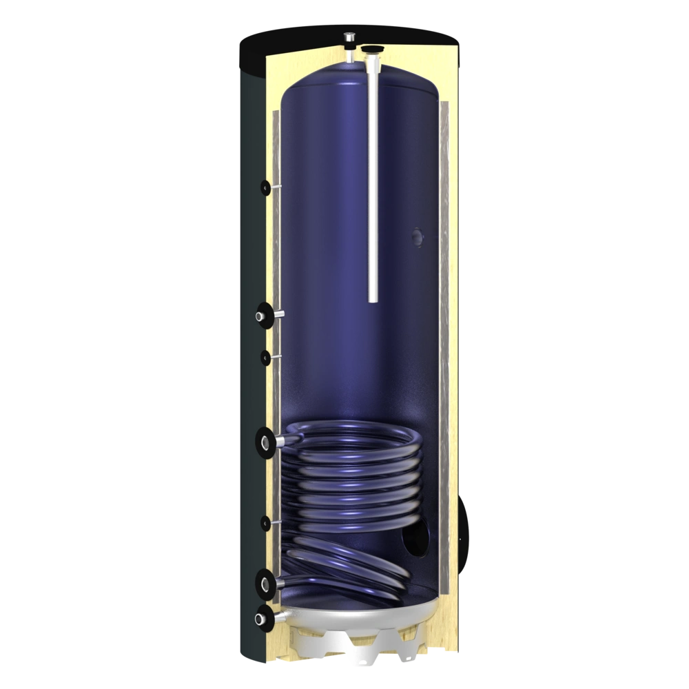 La superficie interna del bollitore ha una finitura smaltata di alta qualità. La superficie dello scambiatore di calore di dimensioni generose, che si estende fino al pavimento, garantisce un ottimo scambio di calore. Una flangia d'ispezione laterale consente una facile manutenzione e pulizia del bollitore e, se necessario, può essere equipaggiato con un manicotto per la resistenza. L'impareggiabile isolamento sottovuoto OEG dei cilindri ha perdite di calore significativamente inferiori rispetto al guscio di coibentazione dei cilindri standard presenti sul mercato.