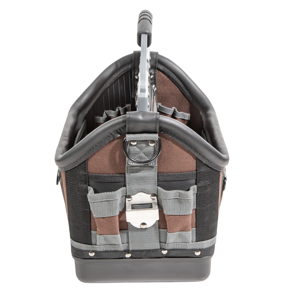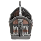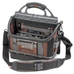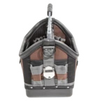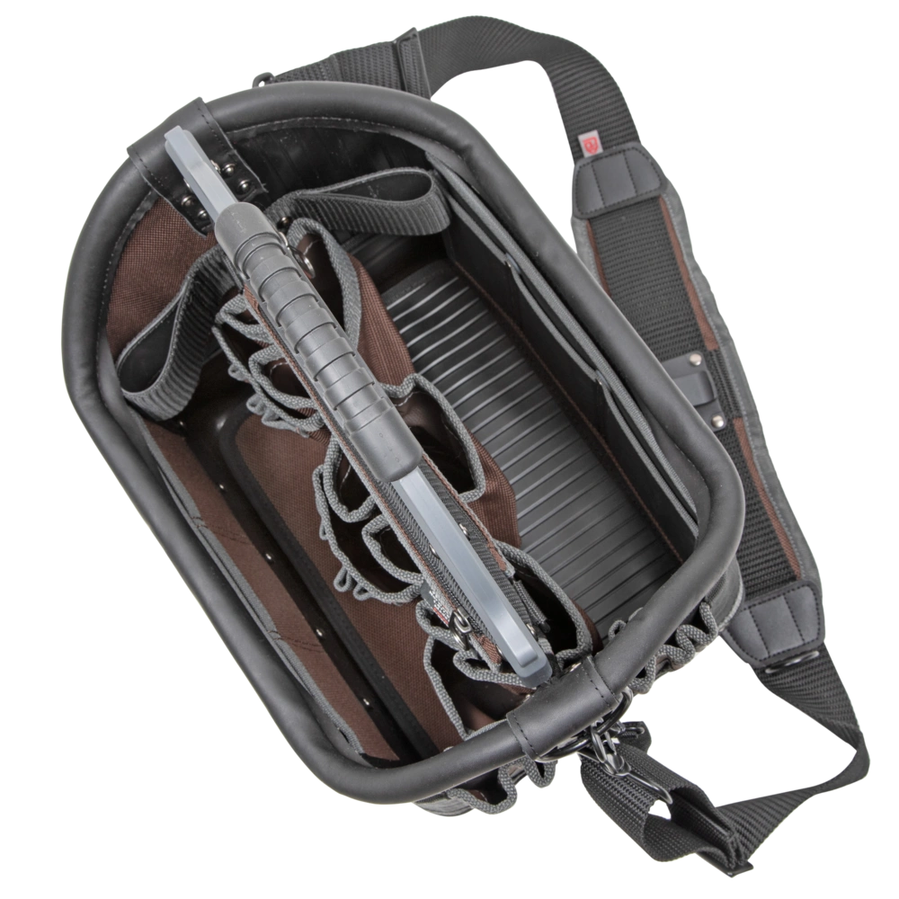 Robusta borsa porta attrezzi resistente alle intemperie in nylon antistrappo e idrorepellente con fondo impermeabile. Oltre ad essere molto spaziosa, questa borsa consente organizzare gli attrezzi in modo chiaro grazie a un totale di 36 diversi scomparti che sono ripartiti all'interno e all'esterno della borsa. Le cerniere lampo e ganci stabili garantiscono una elevata durata di vita e funzionalità. La tracolla regolabile in lunghezza, imbottita e con rivestimento antiscivolo in gomma assicura una presa stabile sulla spalla dell'utilizzatore, ammortizza il peso e rende agevole il trasporto.