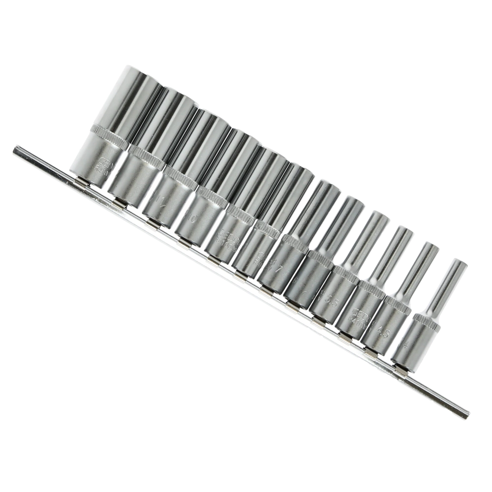 Prese a bussola con zigrinatura per attacco da 1/4" su una striscia di bussole.