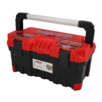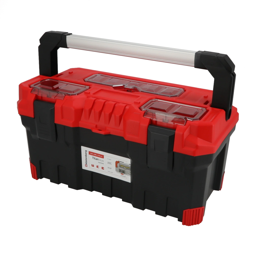 La robusta cassetta degli attrezzi è dotata di robuste chiusure e manico in alluminio. Una custodia per il trasporto e tre scomparti trasparenti per le parti piccole garantiscono una distribuzione sensata...