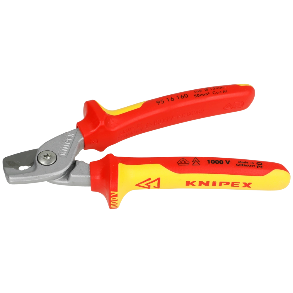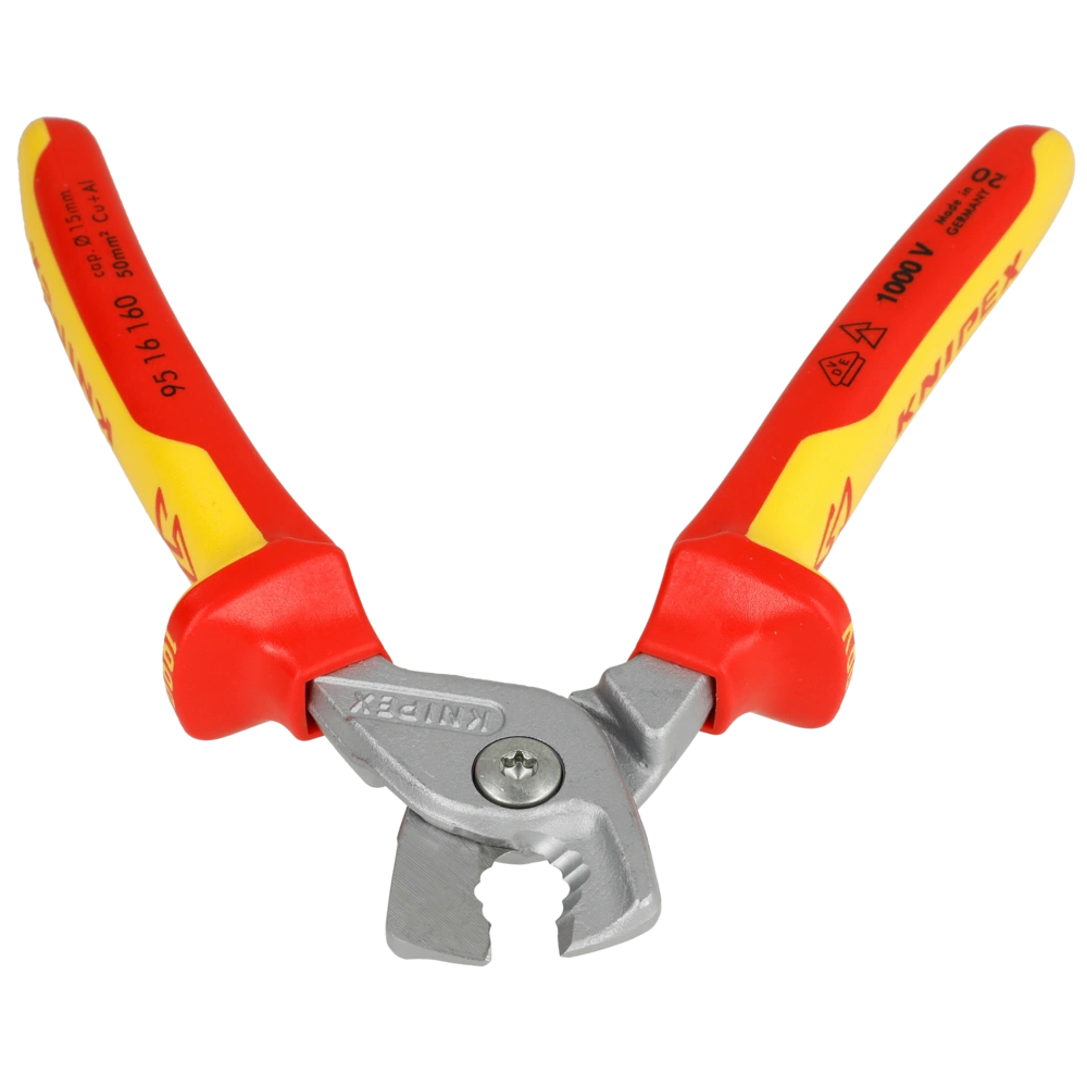Le lame indurite garantiscono un taglio preciso e senza schiacciamenti. La cesoia per cavi contiene una protezione di morsetti e uno snodo a vite regolabile in seguito. L'ergonomico lato offre un'ideale taglio anche con cavi a diametri più larghi. Le impugnature sono isolate.
