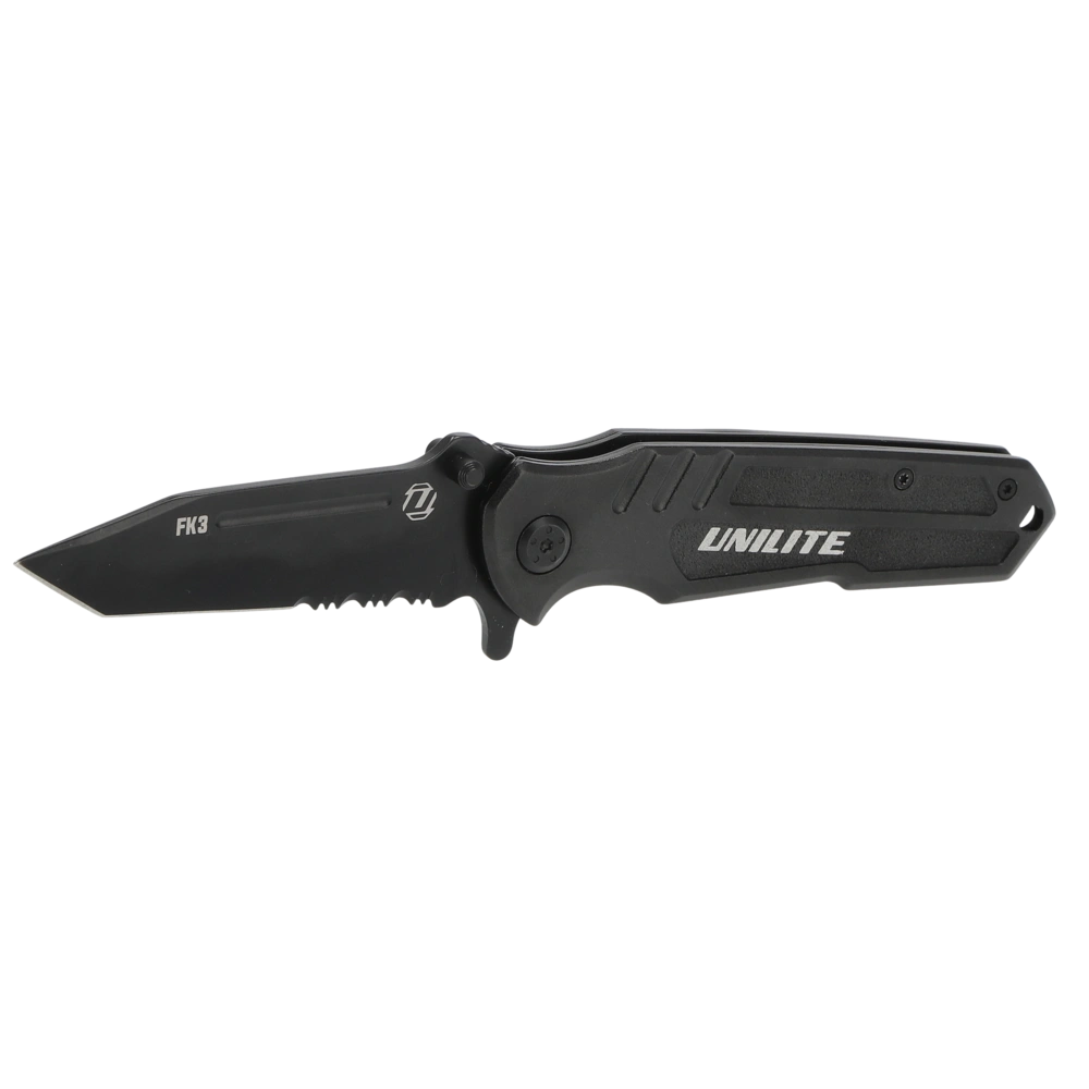 Coltello multiuso robusto con lama seghettata in acciaio inossidabile. Il coltello è dotato di un pratico perno per il pollice per l'apertura con una sola mano e di un meccanismo di blocco per una chiusura facile e sicura...