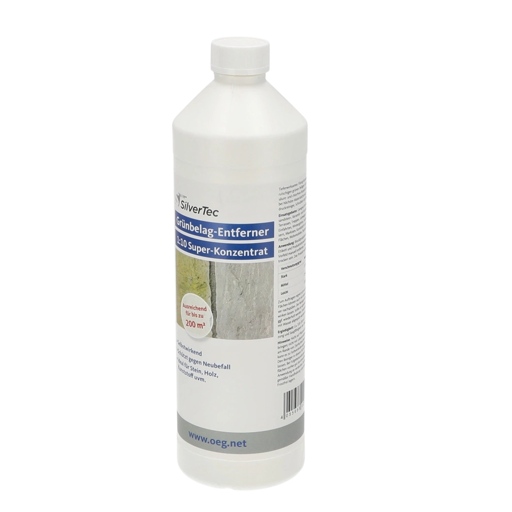 Concentrato auto-agente per la rimozione permanente di alghe e depositi verdi. L'agente, delicato nei materiali e a pH neutro, con effetto protettivo duraturo, può essere utilizzato su tutte le superfici, anche su vetro e superfici verniciate.