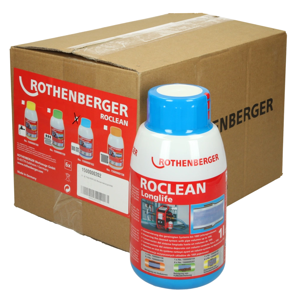 Il conservante Rothenberger ROPULS viene applicato con il compressore di lavaggio ROPULS, protegge il sistema e mantiene lo stato pulito. L'agente Ropuls è adatto a tutti i materiali comuni del tubo...