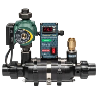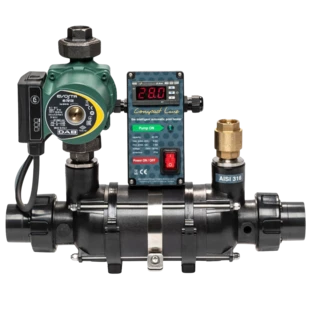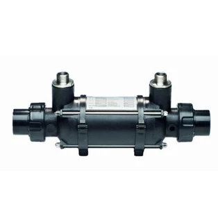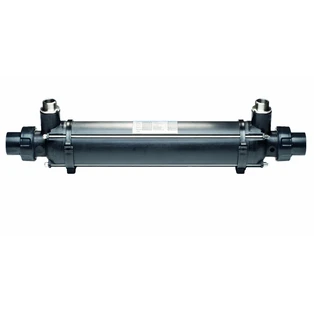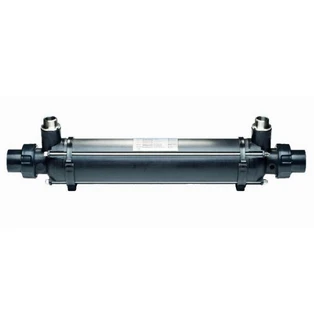 Heat exchangers for heating swimming pools and whirlpools by means of boilers, heat pumps, solar collectors or other heat generators.