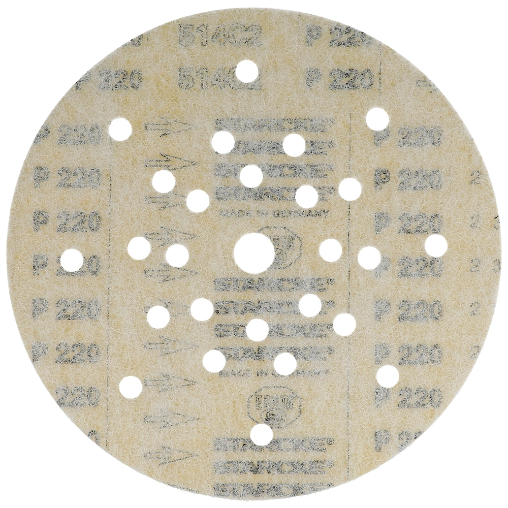 Tutte le informazioni sul prodottoAbrasivo per l'abrasione ad asciutto e l'uso su smergliatrici a collo lungo nel montaggio asciutto e su smergliatrici di pavimento. Grano in corindone ad alta qualità per la lavorazione di superfici, verniciature, lacca e spatole. Più gran effetto con l'uso tenero. Con fori e tessuto speciale adatti per l'aspirazione di polvere. Il meno di emissioni di polvere grazie a 8 fori su un raggio di 70 mm, 10 fori su un raggio di 105 mm e 8 fori su un raggio di 165 mm.