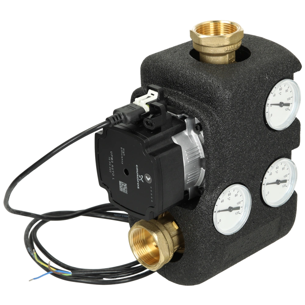 Tutte le informazioni sul prodottoCompact load unit with high efficiency pump and thermal valve for increasing the boiler water and return temperature of solid fuel buffer storage tank heatings. The load unit allows for quick heating up and, therefore, ensures a high and even operating temperature of the boiler.