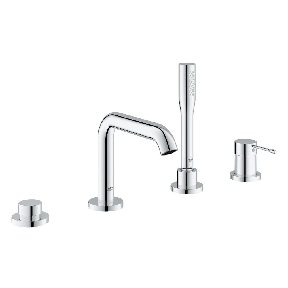 La combinazione vasca monoforo GROHE Essence a 4 fori contiene una doccetta Euphoria Cosmopolitan, un flessibile doccia in metallo 2000 mm, una leva di comando in metallo, dei flessibili di collegamento e una bocca d'eogazione vasca con aeratore. Il rubinetto è sicuro contro il ritorno e contiene una cartuccia in ceramica GROHE SilkMove® 35 mm con un limitatore di temperatura, la superficie cromata GROHE StarLight®, un invertitore dalla vasca alla doccetta e un supporto d'erogazione premontato.