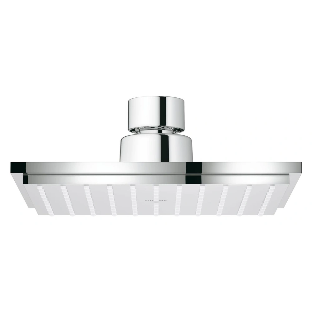 Il soffione doccia GROHE Euphoria Cube 150 ha un diametro di 152 x 152 mm, una superficie GROHE StarLight®, un sistema anticalcare SpeedClean, il GROHE DreamSpray® per un getto perfetto e una tecnologia risparmia acqua GROHE EcoJoy®. Il raccordo ha uno snodo 1/2" con un gomito girevole ± 12 °. Questo soffione doccia contiene un dispositivo che rende la portata costante di 9,5 l/min ed è adatto per scaldacqua.