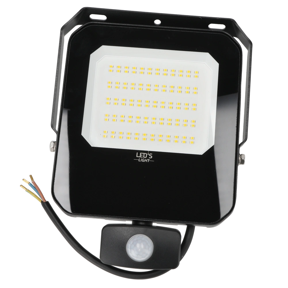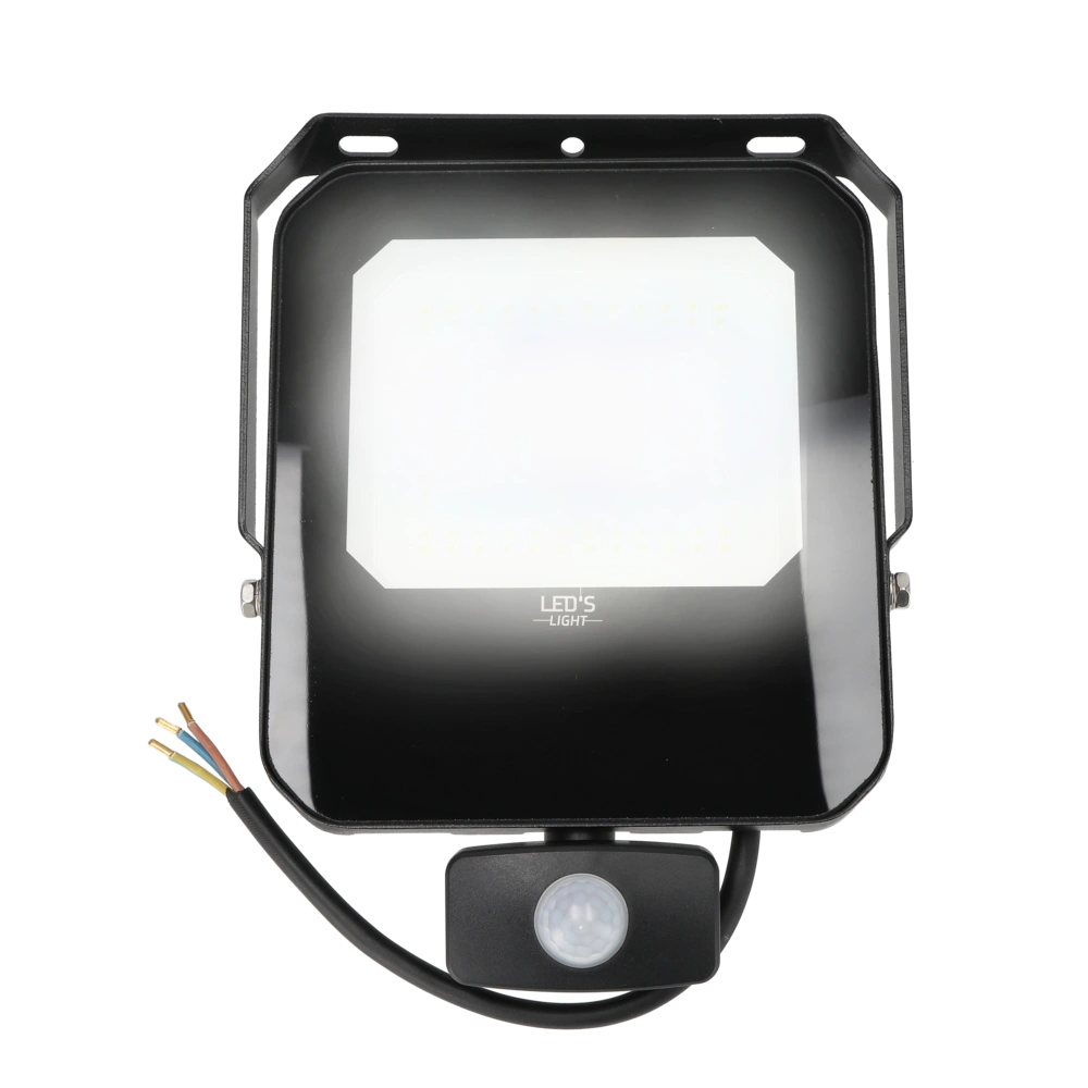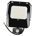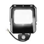 Sturdy LED spotlight with integrated infrared motion detector for increased safety in outdoor areas.