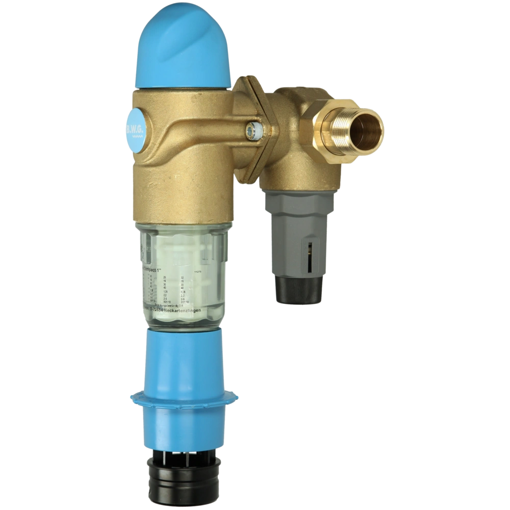Tutte le informazioni sul prodottoFiltro dell'acqua lavabile per impianti domestici. Le particelle di sporco come sabbia, ruggine, trucioli ecc. vengono filtrate dall'acqua per evitare malfunzionamenti e danni da corrosione nell'impianto. Il filtro per il controlavaggio è dotato di un riduttore di pressione e di un manometro. Può essere installato sia in orizzontale che in verticale. La data del prossimo controlavaggio può essere impostata tramite un anello datario.