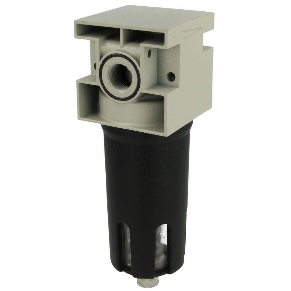 Tutte le informazioni sul prodottoRobusta unità di manutenzione con alloggiamento in metallo. Design compatto per il montaggio su macchine o pareti. Come stadio di pulizia a monte del riduttore di pressione con drenaggio semiautomatico. Massima separazione delle particelle di sporco e della condensa grazie all'accelerazione centrifuga dell'aria compressa. Filtro meccanico a due stadi con 20 µm.