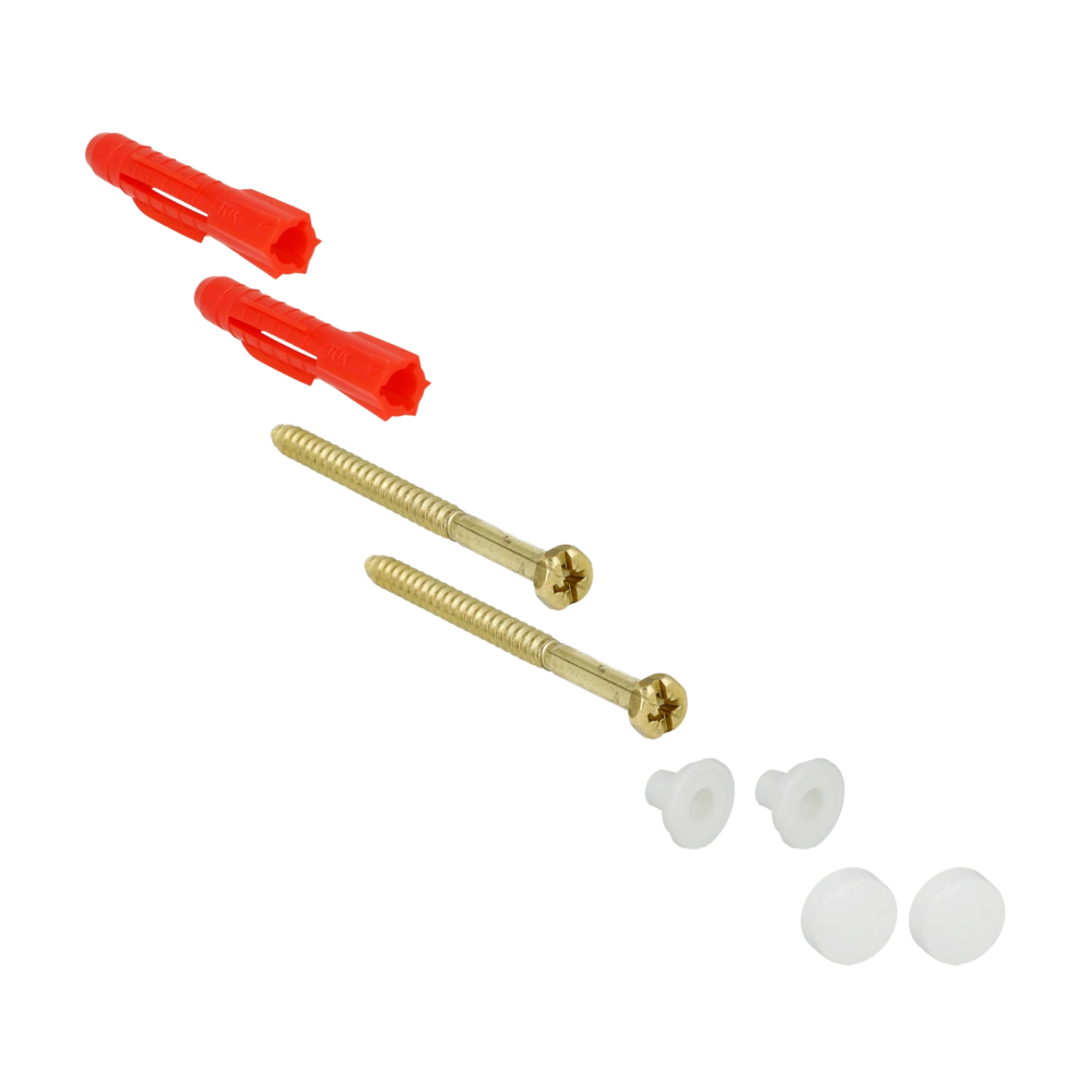 Kit di montaggio per WC a pavimento con cappe bianche.