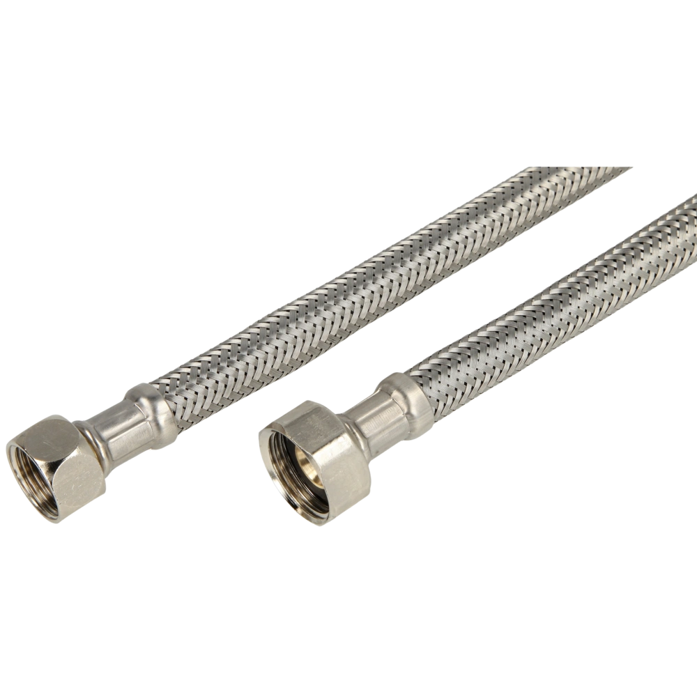 Il flessibile di collegamento 3/8" e dado 1/2" per impiani sanitari e d'acqua potabile contiene un flessibile in plastica e una guaina in acciaio inox a lunga durata di vita.