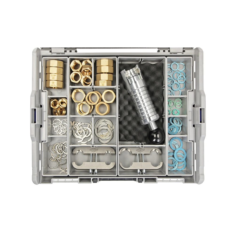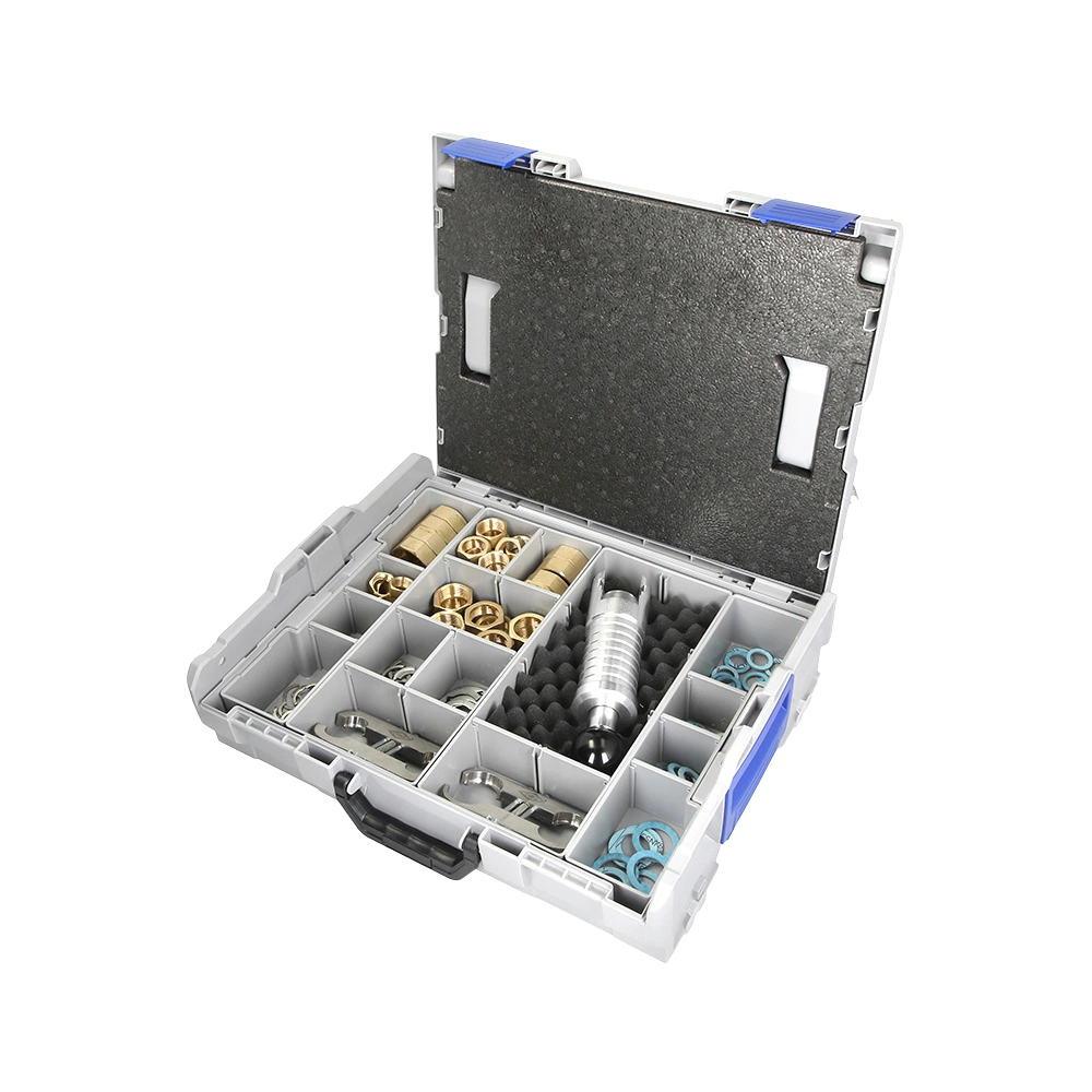 Kit di montaggio rapido per creare transizioni filettature su tubi ondulati. Nell'utile L-Boxx gli attrezzi e raccordi necessari possono essere trovati rapidamente.