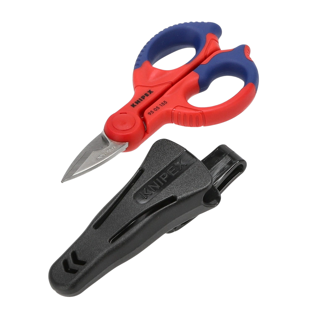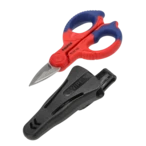 Le forbici per elettricista universali includono multipli lavori in un attrezzo. Grazie al intaglio nella lama inferiore l'accorcimento, lo spelare di cavi e l'isolamento diventano possibile.