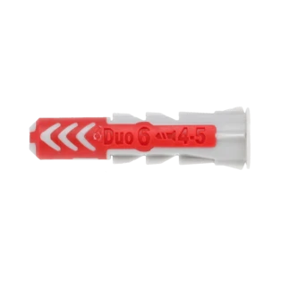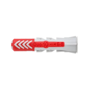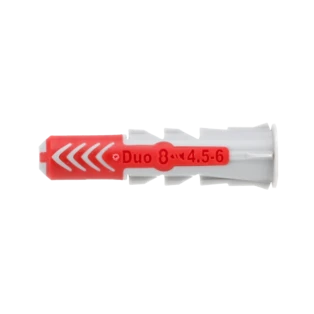 I tasselli DuoPower sono adatti per l'installazione preforo e foro passante in quasi tutti i materiali da costruzione. I 2 componenti garantiscono buoni valori di carico: A seconda del materiale da costruzione, il componente grigio attiva automaticamente il principio funzionale ottimale (espansione, piegatura, annodamento) per una buona tenuta.