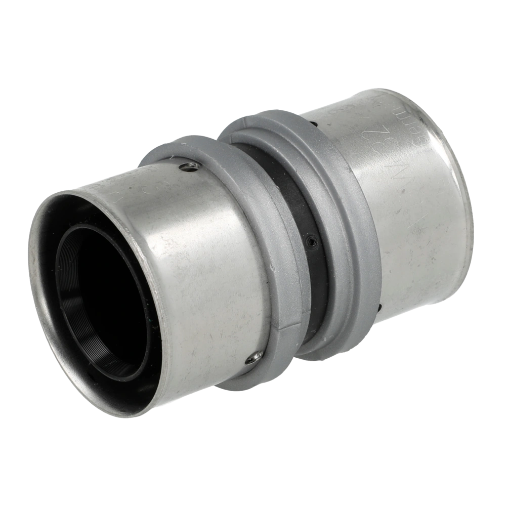 Raccordo a pressare realizzato in materiale plastico ad alte prestazioni, il polifenilsulfone, con eccezionali caratteristiche di resistenza meccanica e alla corrosione. Questo raccordo offre enormi vantaggi, in termini di praticità e velocità, semplicità di montaggio con affidabilità e sicurezza della tenuta nel tempo. Il raccordo in PPSU senza piombo è dotato di due o-ring e tre finestre di controllo per vedere se il tubo multistrato ha raggiunto la corretta posizione di inserimento prima della pressatura. Grazie al multiprofilo, questo raccordo a compressione può essere utilizzato indifferentemente con 2 profili di pressatura, il profilo TH per tutte le grandezze e il profilo U per tubi con sezione da 16 a 32 mm. Il rigido anello fermabussola in plastica garantisce una salda pressatura in qualsiasi posizione di montaggio. Durante il controllo della tenuta il raccordo non pressato perde. Ciò consente individuare ed eliminare perdite durante la prova di tenuta. Grazie al libero flusso attraverso la giunzione, il raccordo a pressare riduce al minimo le perdite di carico e non si sentono rumori di flusso fastidiosi.