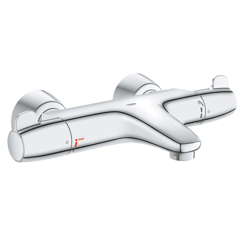 Il miscelatore termostatico vasca contiene maniglie ergonomiche in metallo ed è progettato per il montaggio a parete. La maniglia Grohe aqua dimmer contiene un regolatore di flusso, un' arresto integrato dell'acqua mista e una commutazione da bagno a doccia. Il miscelatore per vasca è dotato di un'uscita doccia integrata, di un dispositivo antiriflusso e di un fermo di sicurezza in metallo. Il fine corsa di sicurezza si trova nell'impugnatura della temperatura, è impostato tra 35 °C e 43 °C. Il getto laminare integrato è dotato anche di un filtro a trappola per lo sporco e del Grohe Quickfix per una rapida sostituzione dell'antiriflusso. Il Grohe 100% CoolTouch con custodia di sicurezza è dotato di connessioni CoolTouch S nascoste.