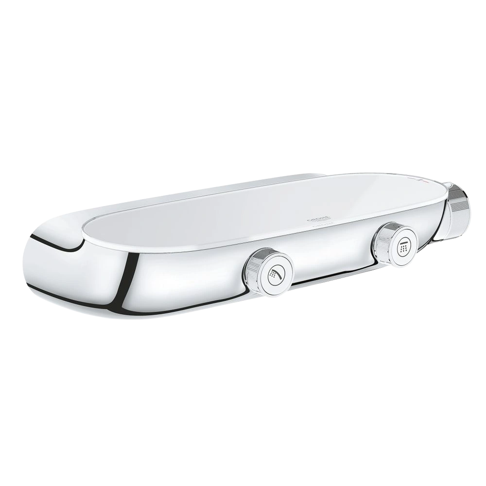 L'uscita della doccetta si trova in basso del miscelatore ed è sicura contro il ritorno. Il miscelatore contiene anche la mensola doccia GROHE EasyReach e la superficie GROHE StarLight facile da pulire. È resistente ai graffi.