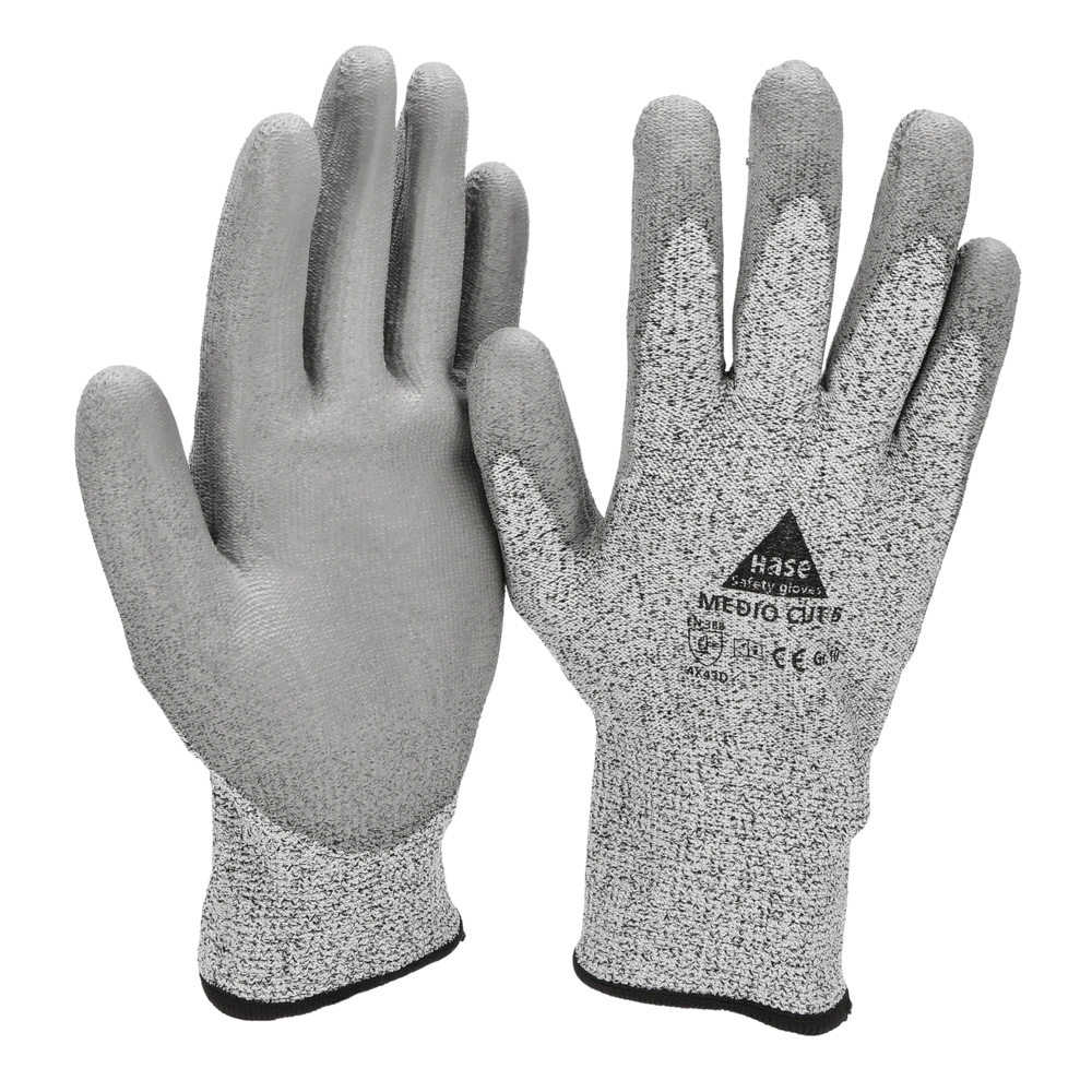 Cut-resistant gloves made of glass fibre hybrid yarn with PU coating on palms and fingertips. The gloves offer reliable protection and a secure grip for precise work in workshops, industry and trade. They are very robust, yet flexible and comfortable to wear!