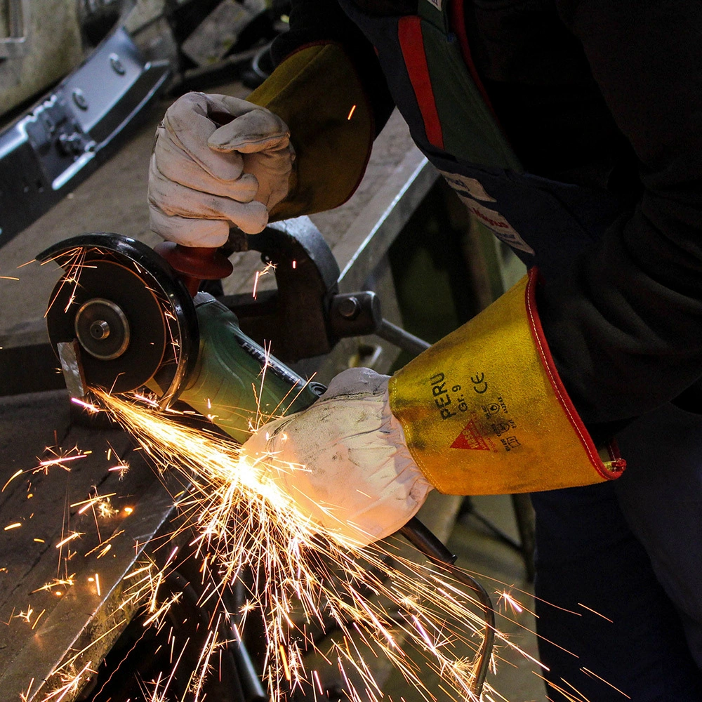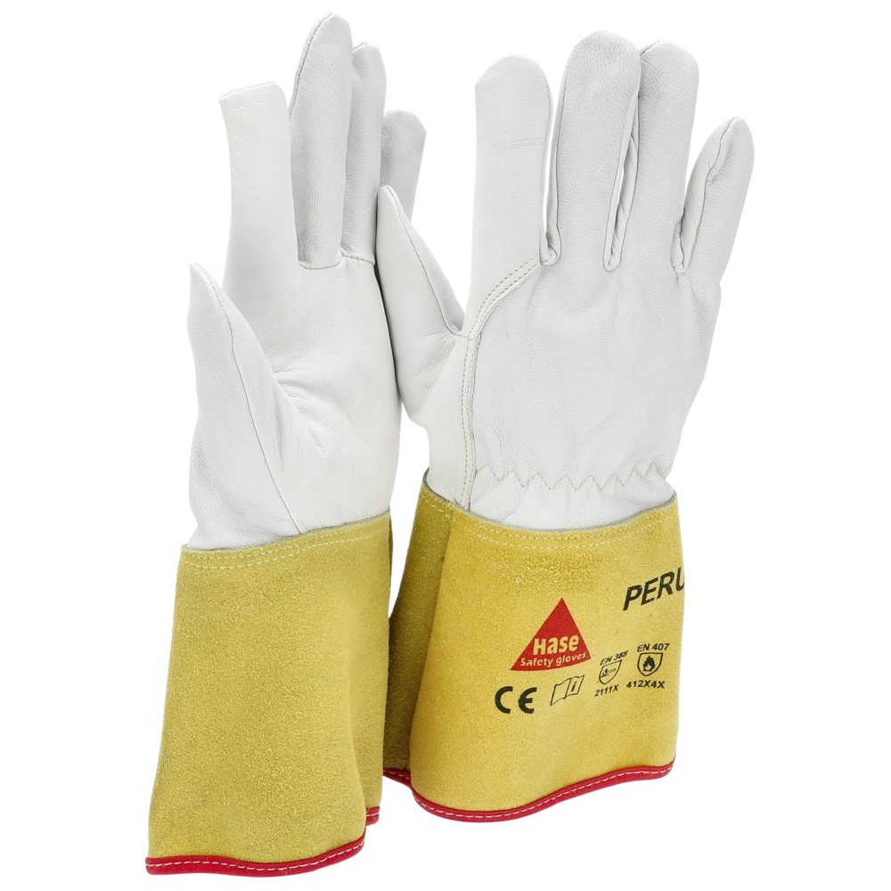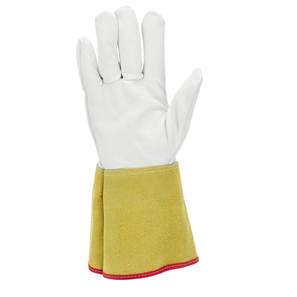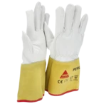 Guanti resistenti in nappa di capra con polsino in manichetta di pelle di vacca. Le cuciture in Kevlar® e il dorso elasticizzato assicurano una lunga durata e una vestibilità perfetta, ideale per lavorare in condizioni di caldo.