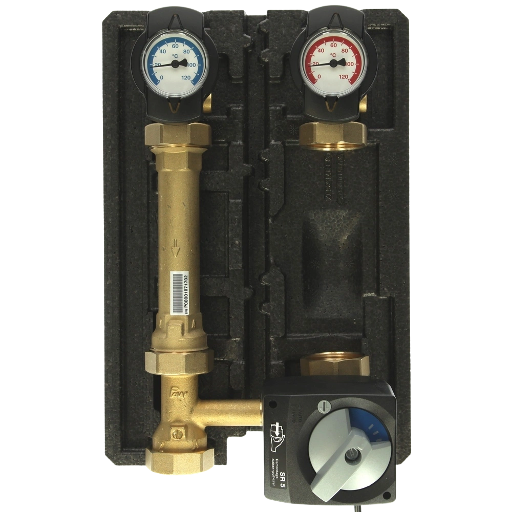 Tutte le informazioni sul prodottoHeatBloc Eco è ideale per l'uso con il sistema di riscaldamento a miscelatore ed è fornito con un miscelatore a 3 vie con un bypass regolabile 0-50%. Il kit circuito di riscaldamento offre una valvola a sfera termometrica, una valvola antitermosifone e valvole a sfera per pompe. La mandata e il ritorno non possono essere ricambiati. A causa delle sue piccole dimensioni il HeatBloc Eco può essere usato in molti ambiti. La potenza massima durante un'espansione della temperatura di 20 K è 44 kW. Ci si possono installare circolatori di alta efficienza energetica con una lunghezza di 180 mm.