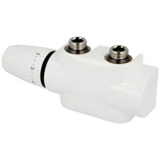 Mascherina di copertura plastica IMI Heimeier per pezzi infertiori della valvola termostatica in esecuzione ad angolo e diritta Multilux. Consegna in color bianco.
