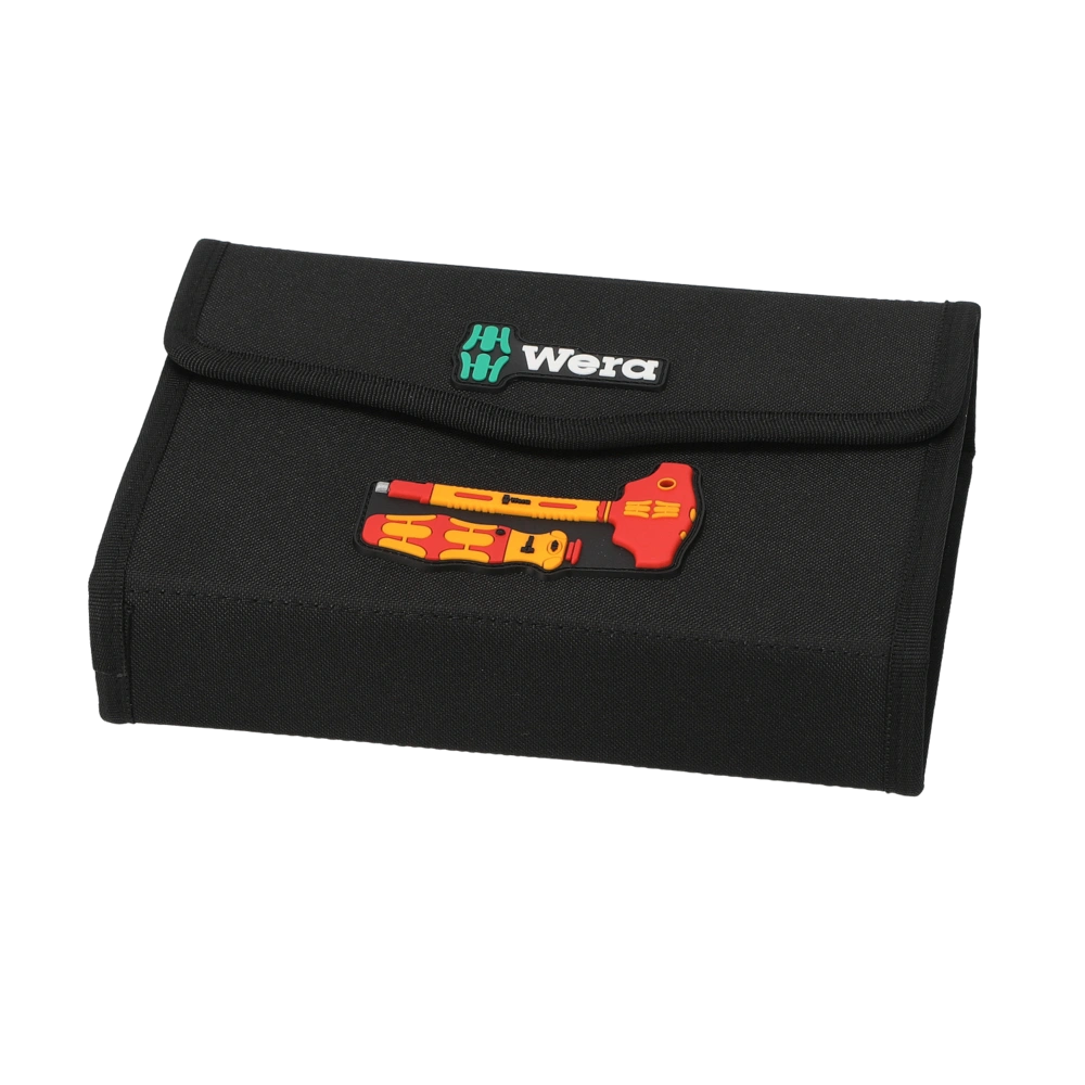 La codifica cromatica delle lame garantisce un lavoro più rapido e meno faticoso, anche quando lo spazio è limitato.Il codice colore delle lame aiuta a trovare immediatamente l'utensile giusto. Il doppio isolamento delle prese offre una maggiore sicurezza, poiché uno strato esterno danneggiato è immediatamente visibile. Tutto è conservato in modo compatto e ordinato in una robusta scatola di tessuto, che potete fissare in modo flessibile a una parete di attrezzi, a un carrello portautensili o direttamente al sistema Wera 2go.
