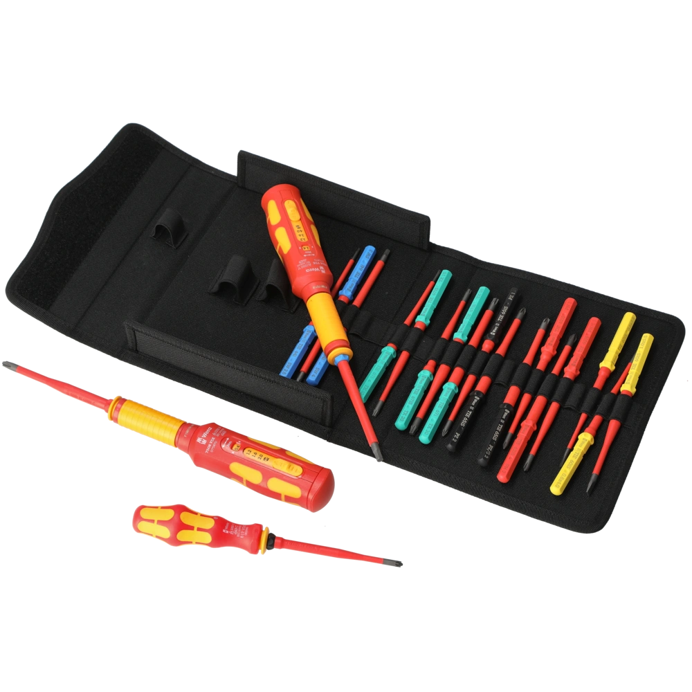 Set di cacciavite VDE da 23 pezzi per lavorare in modo preciso e sicuro sugli impianti elettrici.