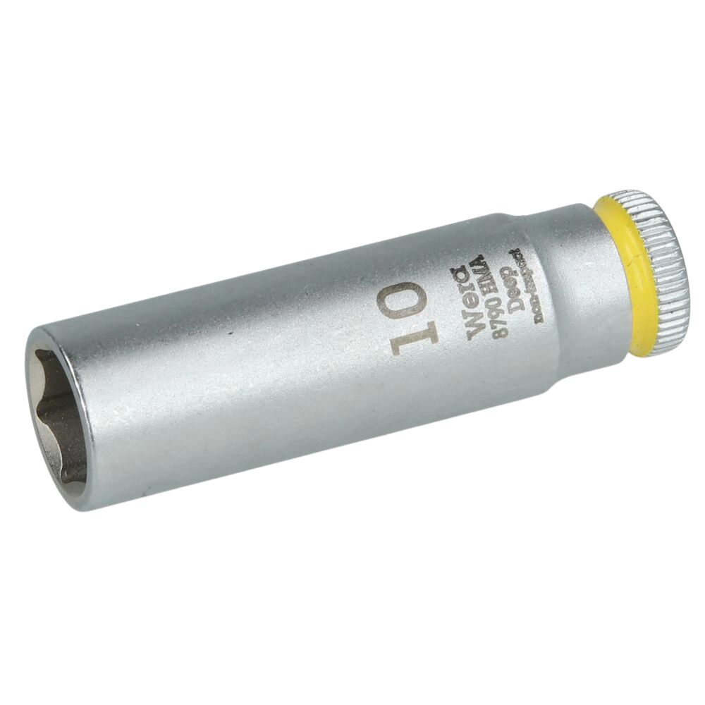 Il lungo inserto a tubo manuale e a macchina con incavo sfera è adatto per viti e dadi a testa con esagono esterno infossati. Grazie alla marcatura a colore trovi attrezzo Take it easy ogni grandezza è sempre alla mano...