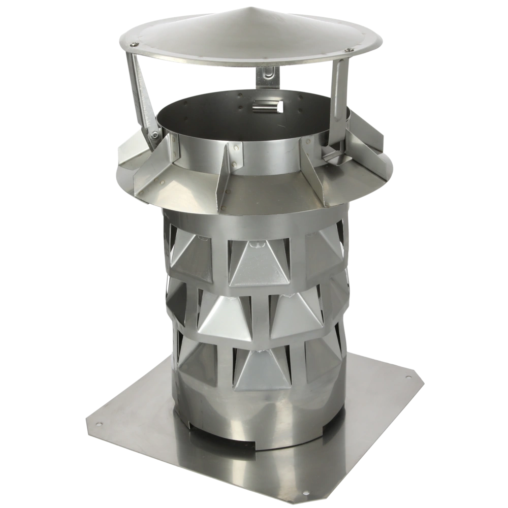 Il sistema Windkat contiene una piastra base angolare ed è adatto per fumaioli con una dimensione interna di 120 x 120 mm.