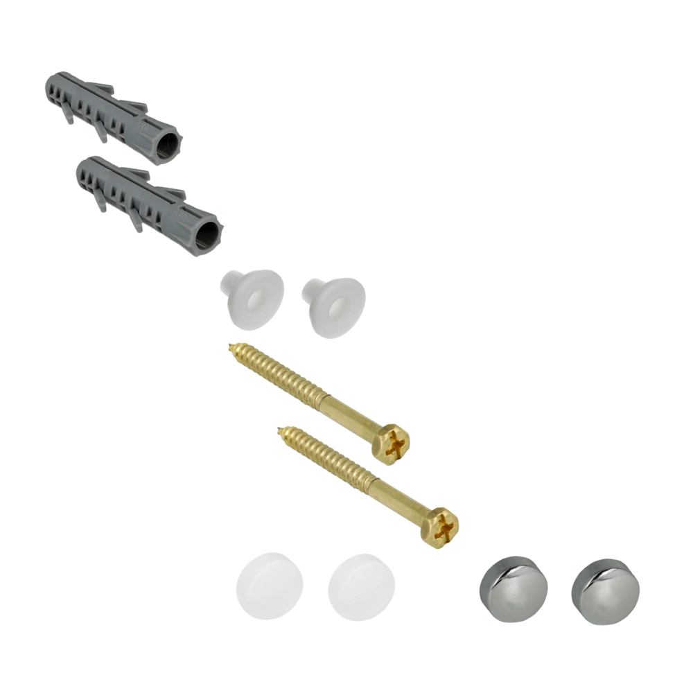Kit di fissaggio per il montaggio di WC a pavimento su calcestruzzo e pietra piena con uno spessore di ceramica fino ai 24 mm.