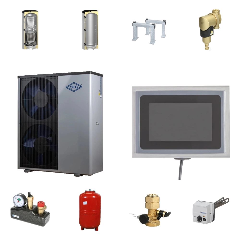 Kit pompa di calore aria acqua monoblocco residenziale di alta qualità con la massima efficienza energetica. I componenti progettati per lavorare insieme sono studiati per una durata utile molto estesa. È la soluzione ideale per il riscaldamento efficace degli ambienti in edifici di nuova costruzione e edifici esistenti.