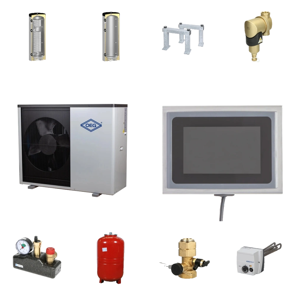 Kit pompa di calore aria acqua monoblocco residenziale di alta qualità con la massima efficienza energetica. I componenti progettati per lavorare insieme sono studiati per una durata utile molto estesa. È la soluzione ideale per il riscaldamento efficace degli ambienti in edifici di nuova costruzione e edifici esistenti.