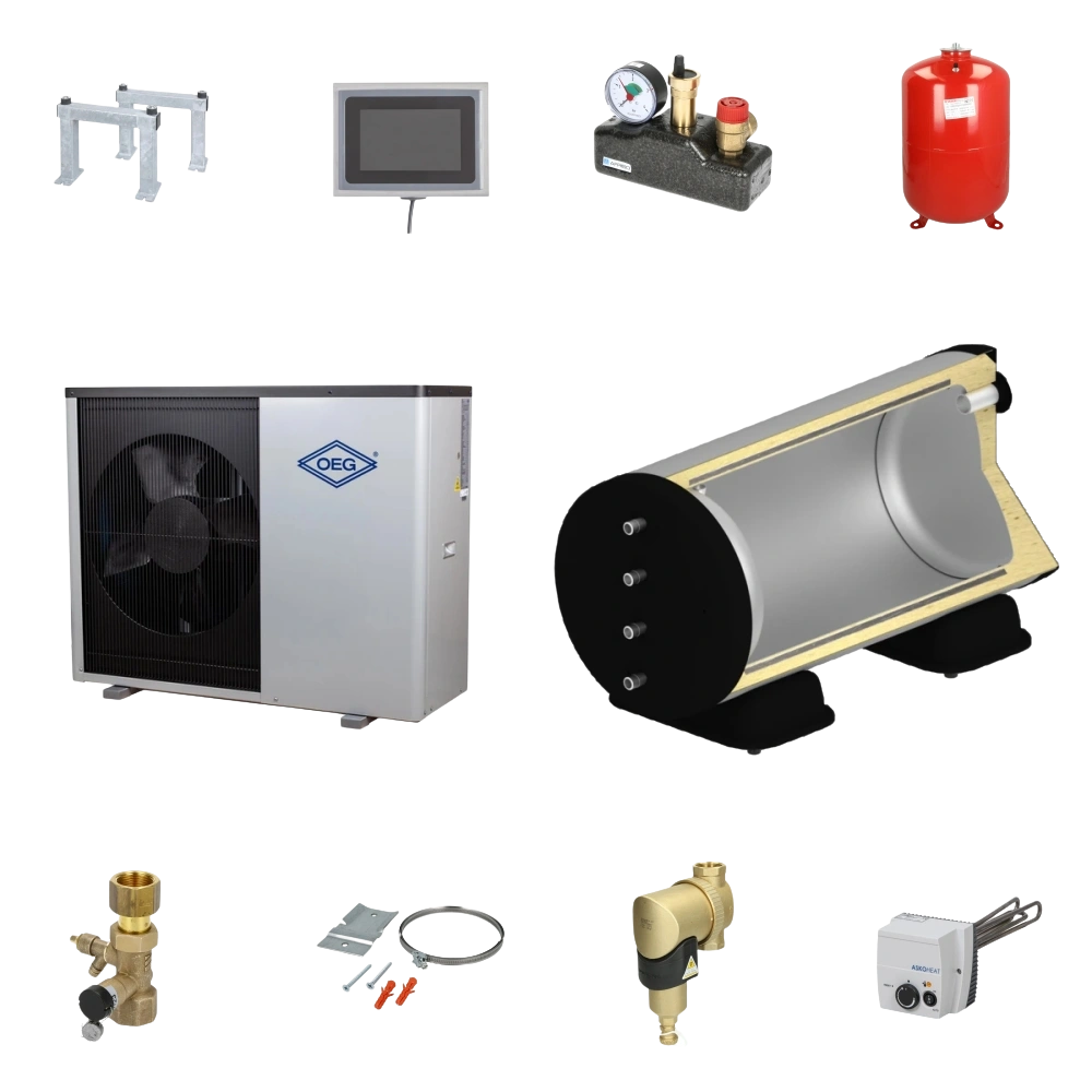 Kit pompa di calore aria acqua monoblocco residenziale di alta qualità con la massima efficienza energetica. I componenti progettati per lavorare insieme sono studiati per una durata utile molto estesa. È la soluzione ideale per il riscaldamento efficace degli ambienti in edifici di nuova costruzione e edifici esistenti.