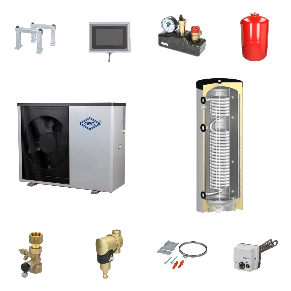 Kit pompa di calore aria acqua monoblocco residenziale di alta qualità con la massima efficienza energetica. I componenti progettati per lavorare insieme sono studiati per una durata utile molto estesa. È la soluzione ideale per il riscaldamento efficace degli ambienti in edifici di nuova costruzione e edifici esistenti.