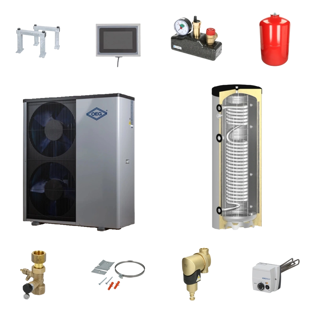 Kit pompa di calore aria acqua monoblocco residenziale di alta qualità con la massima efficienza energetica. I componenti progettati per lavorare insieme sono studiati per una durata utile molto estesa. È la soluzione ideale per il riscaldamento efficace degli ambienti in edifici di nuova costruzione e edifici esistenti.