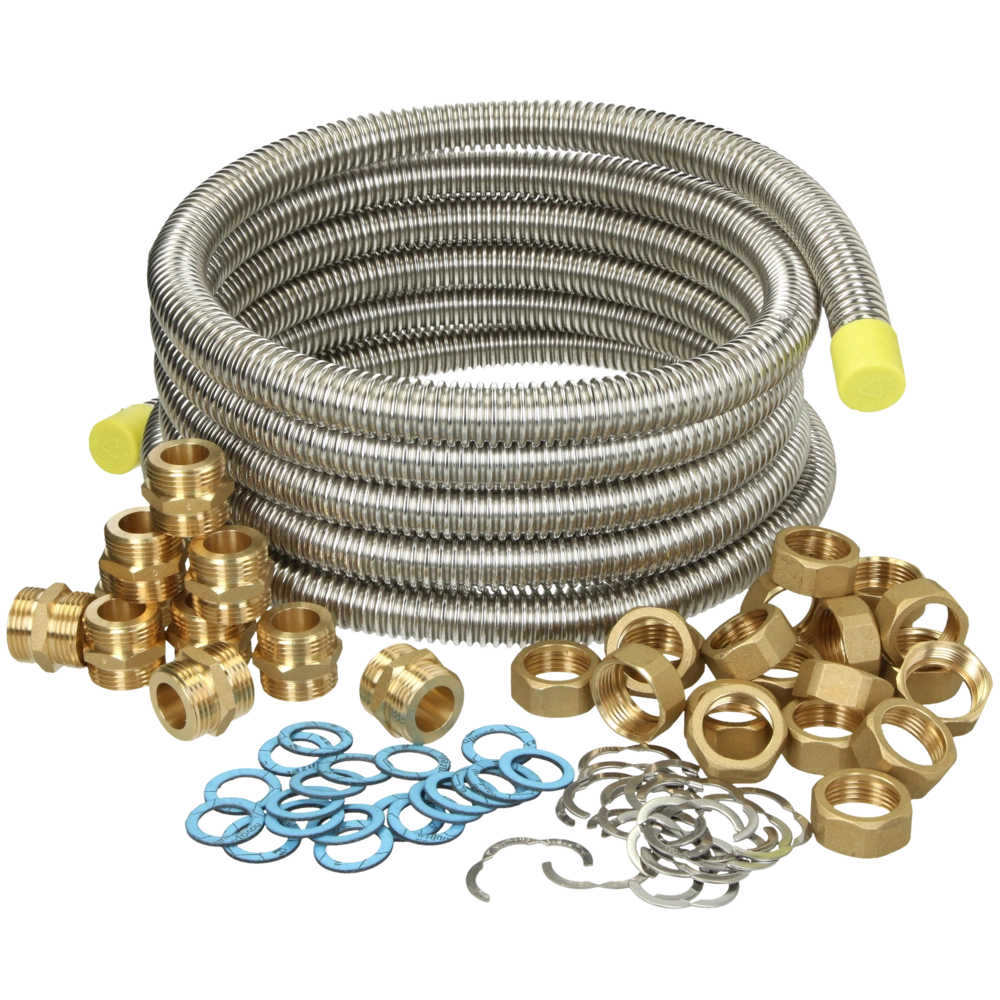 Kit per il montaggio flessibile ed individuale e l'estensione del tubo ondulato in acciaio inox a seconda delle esigenze.