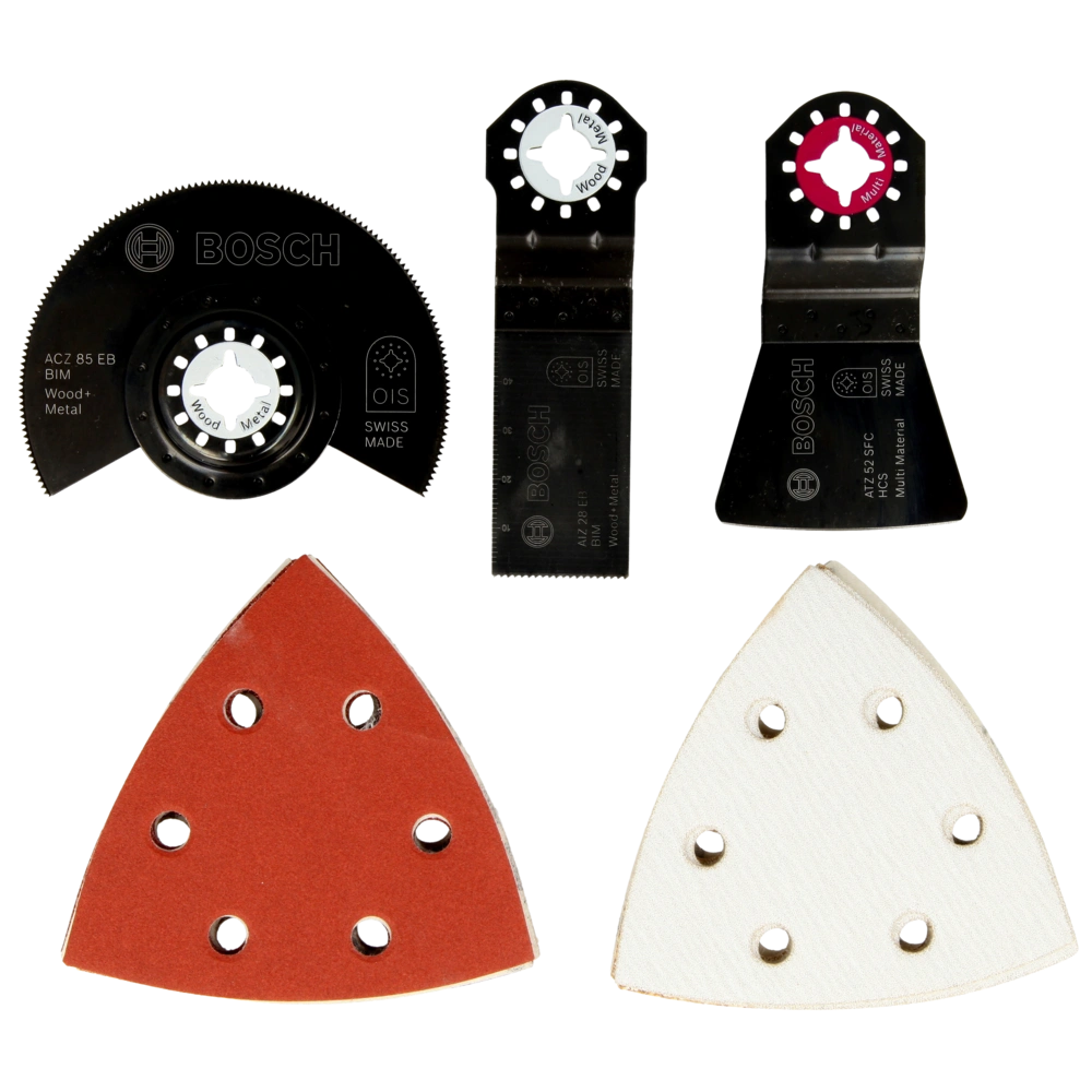 Il set universale Bosch combina tutte le applicazioni di base in un unico set ( taglio, rettifica, raschiatura) ed è adatto per il legno e metalli.