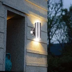 La lampada da parete LED è moderna e di alta qualità. È adatta per gli esterni e ha una scatola in alluminio molto robusta. Grazie agli angoli d'illuminazione in alto e in basso la luce forma un cono a clessidra.