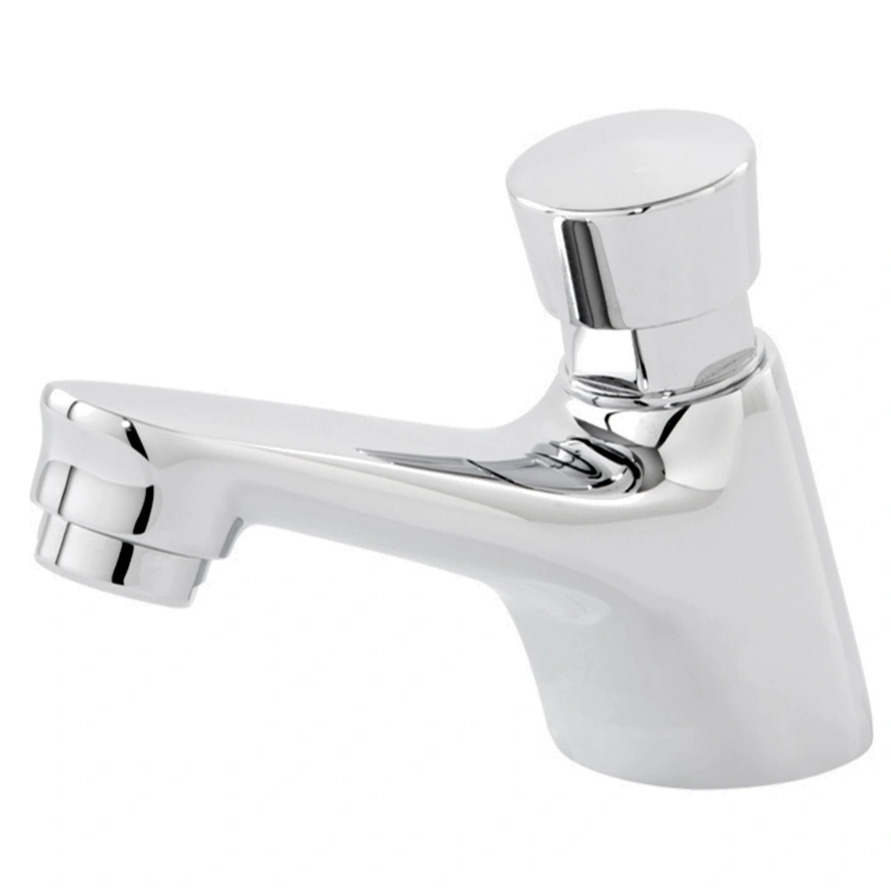 Questo miscelatore a chiusura automatica per lavabo di media portata è progettato per un uso affidabile in aree private e semipubbliche. Il meccanismo di autochiusura integrato arresta automaticamente il flusso dell'acqua dopo un tempo di funzionamento prestabilito. Ciò consente di controllare il consumo d'acqua e di ridurre il rischio di un funzionamento continuo.