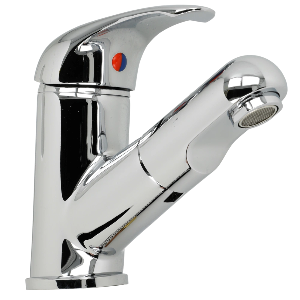 Miscelatore monocomando per il montaggio a lavabi. La doccetta estraibile offre alta flessibilità e facilita la pulizia della vasca.