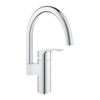 Tutte le informazioni sul prodotto FornituraMiscelatore monocomando per il montaggio monoforo su lavelli. Il rubinetto è disegnato con canna alta, di un sistema di tenuta a dischi ceramici SilkMove® da 35 mm per la regolazione variabile del consumo idrico ed energetico grazie al limitatore di temperatura integrato. La finitura cromata StarLight® lo rende particolarmente igienico, facile da pulire e resistente ai graffi. L'alta canna girevole contribuisce a un comfort aumentato. I canali separati all'interno del miscelatore per il passaggio dell'acqua, sono disegnati con tecnologia GROHE Zero che garantisce che l'acqua erogata dal rubinetto sia esente da piombo e nickel.