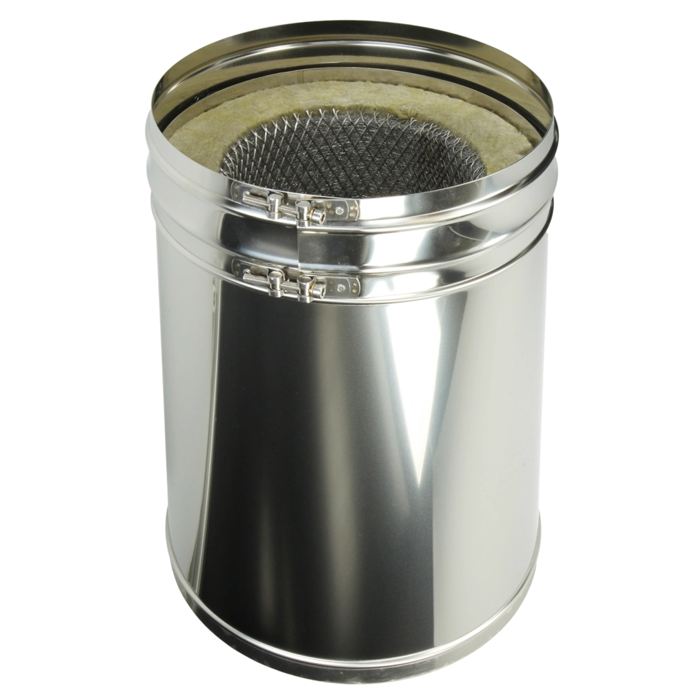 Tutte le informazioni sul prodottoSilenziatore passivo di estensione per i silenziatori per fumi del modello base dei tipi ASD, AGM e AWM da utilizzare con tutti i caminetti standard e i sistemi di caldaie a condensazione. L'estensione è costituita da un alloggiamento cilindrico in acciaio inox, un manicotto di collegamento extra-largo con guarnizione e un anello di supporto.