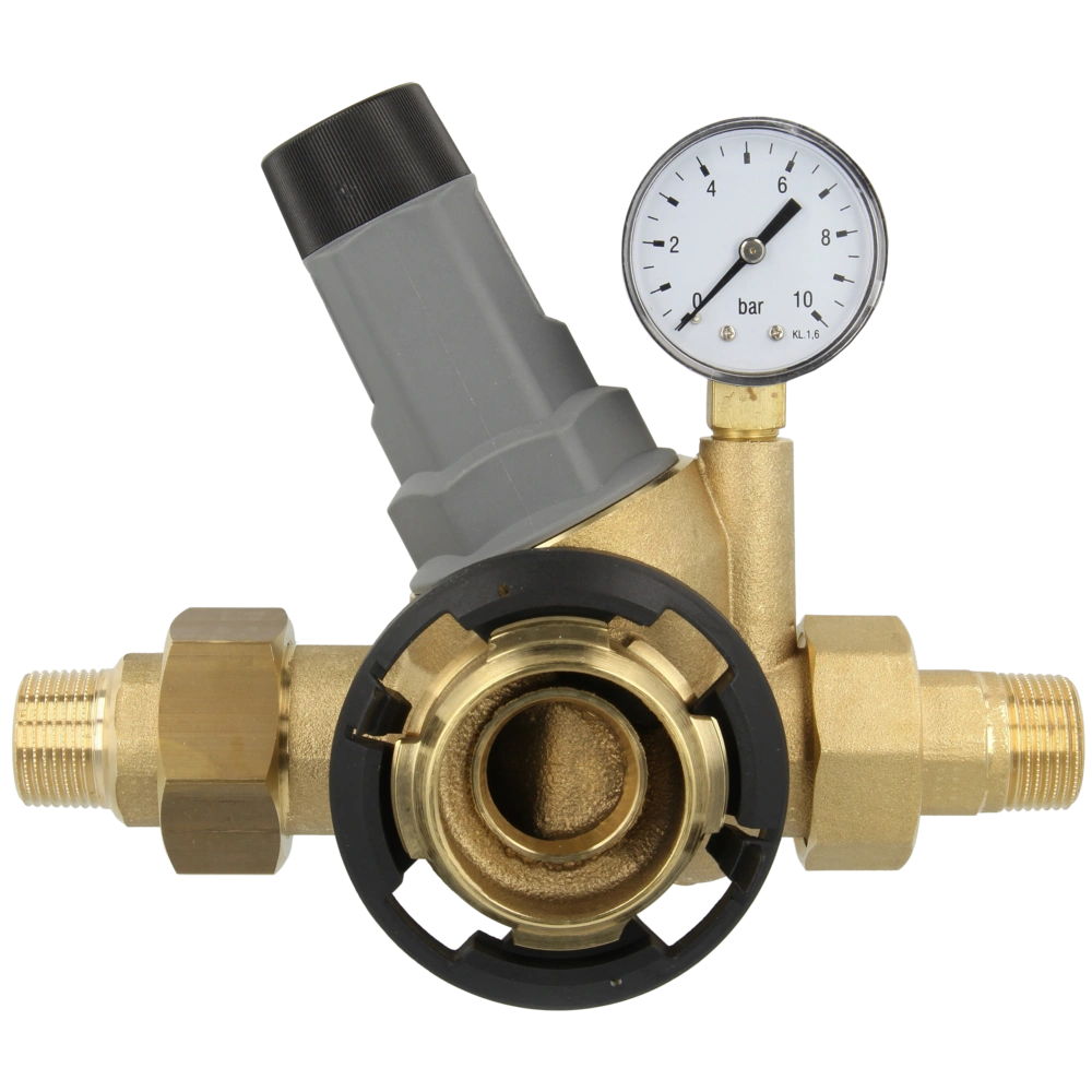 Il modulo di raccordo BWT DR contiene un riduttore di pressione e un indicatore. Il modulo di raccordo serve come raccordo rapido per filtri di protezione ed è adatto per il montaggio orizzontale e verticale.