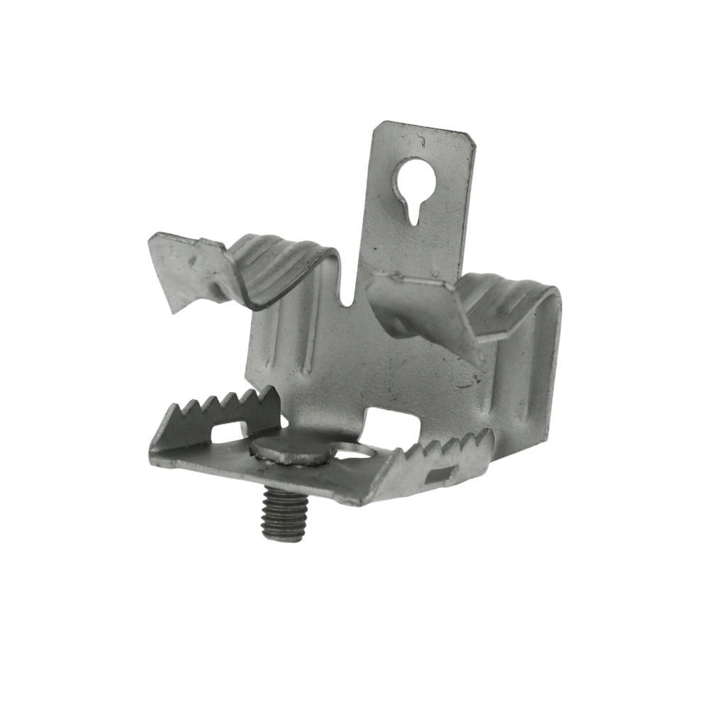 Morsetto per travi per il fissaggio a travi in acciaio senza saldare o forare. Può essere usato per travi orizzontali e verticali. I morsetti e le scatole di distribuzione possono essere fissati attraverso il perno filettato.