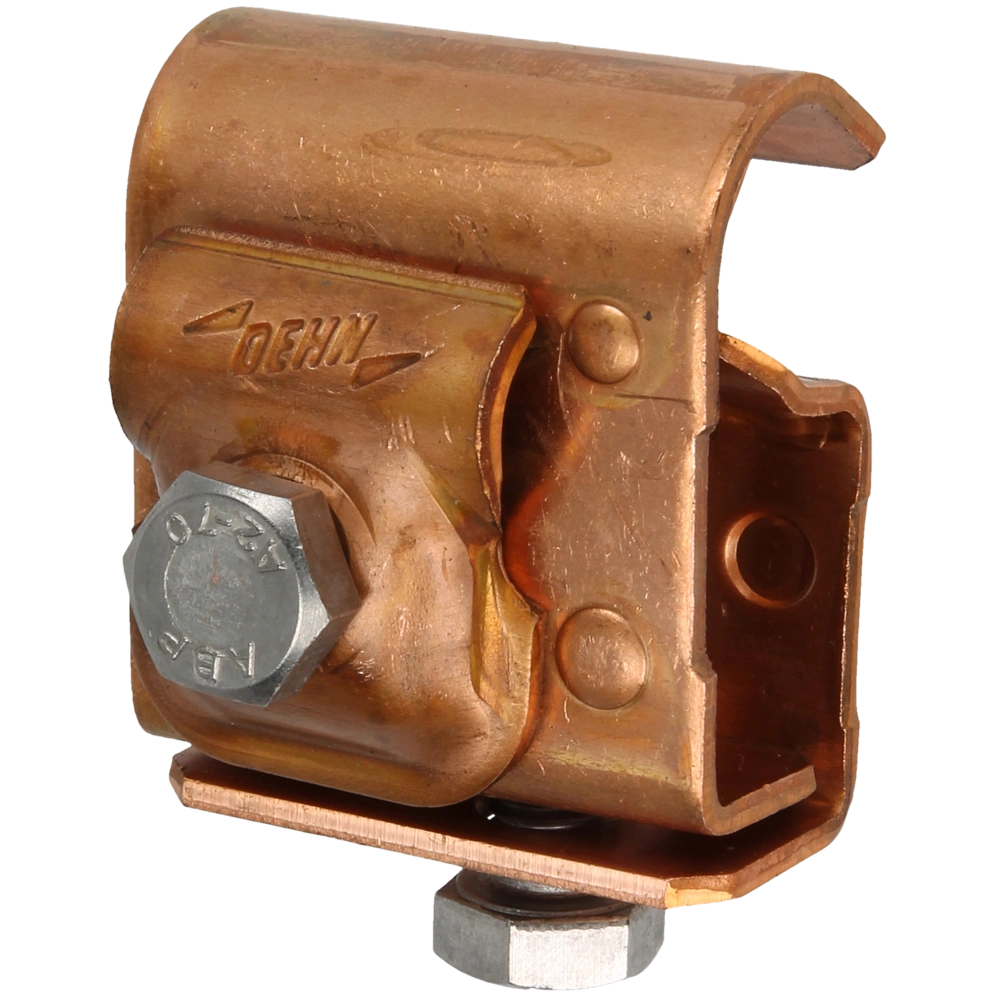 . Tutte le informazioni sul prodottoMorsetto per grondaia in rame con blocco di bloccaggio per il collegamento di conduttori rotondi e grondaie per il passaggio longitudinale e trasversale dei cavi