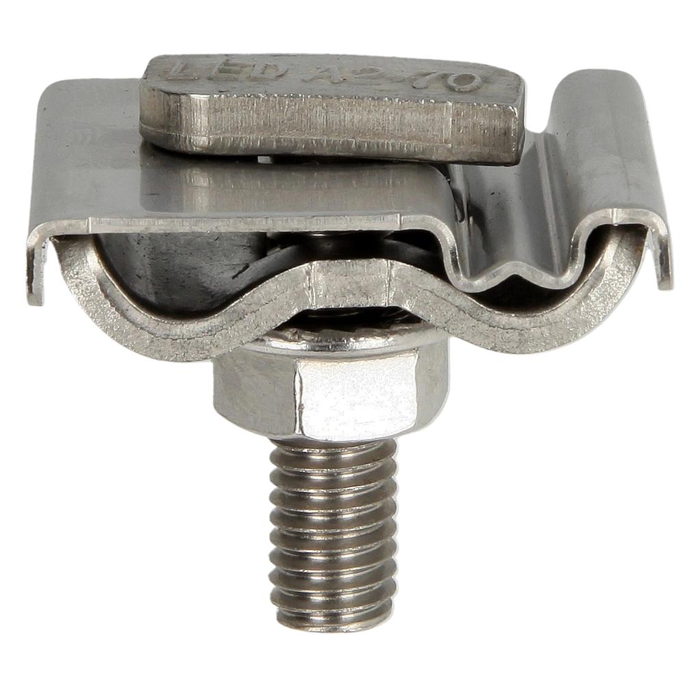 Morsetto di messa a terra in acciaio inox V2A per la realizzazione affidabile dei requisiti di messa a terra di impianti fotovoltaici o altri sistemi. Il materiale di alta qualità rende il morsetto resistente alla corrosione e molto durevole...